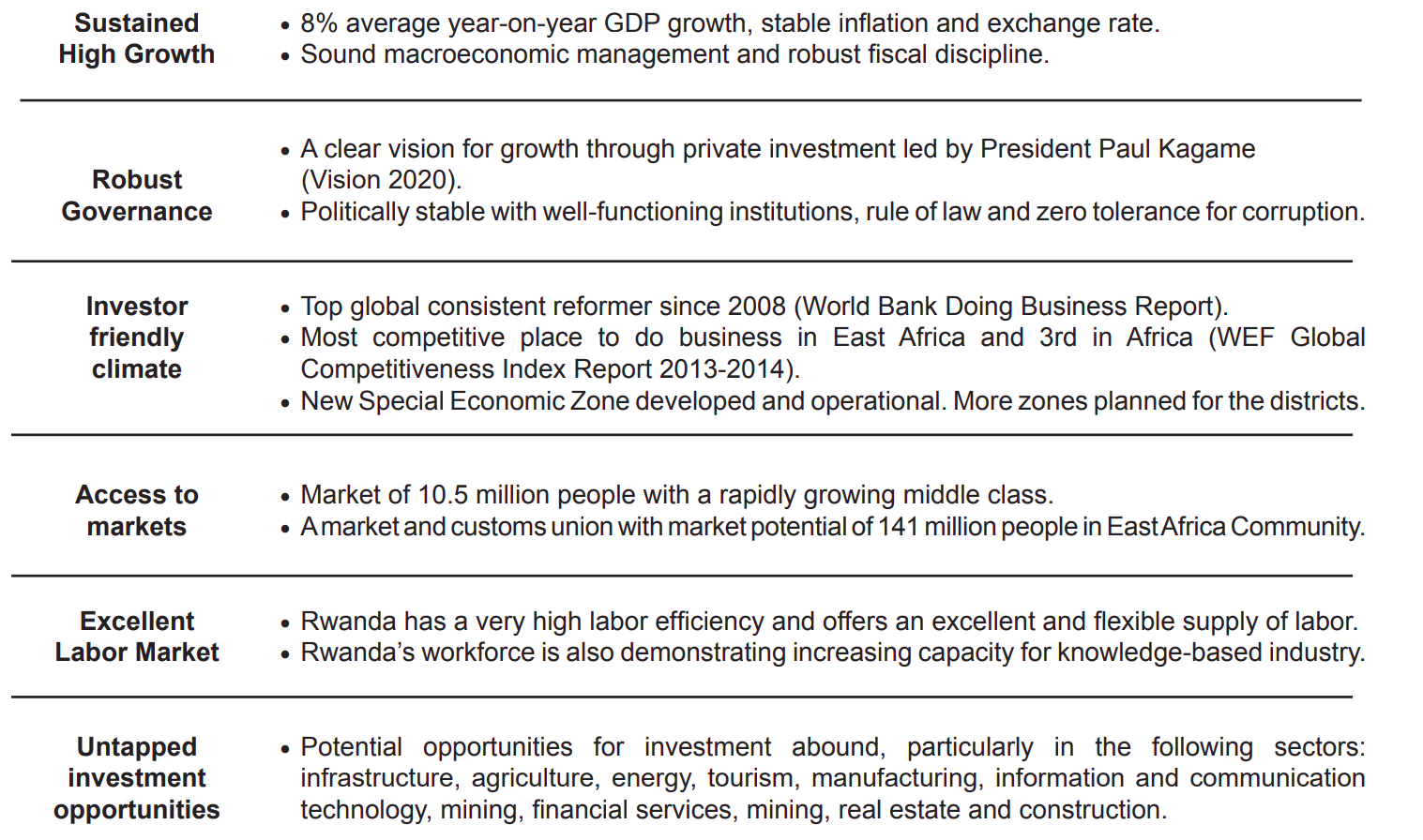 Strategically positioned within the heart of East Africa, Rwanda presents a unique opportunity for investors to rapidly expand operations and tap into local, regional, and global markets. Foreign investors can harness Rwanda's evolving economic landscape, supported by its robust network of trade agreements and investment treaties. Investing in Rwanda promises sustainable growth for private individuals, SMEs, and multinational corporations, underpinned by the nation's commitment to fostering a thriving investment climate and achieving long-term economic development.